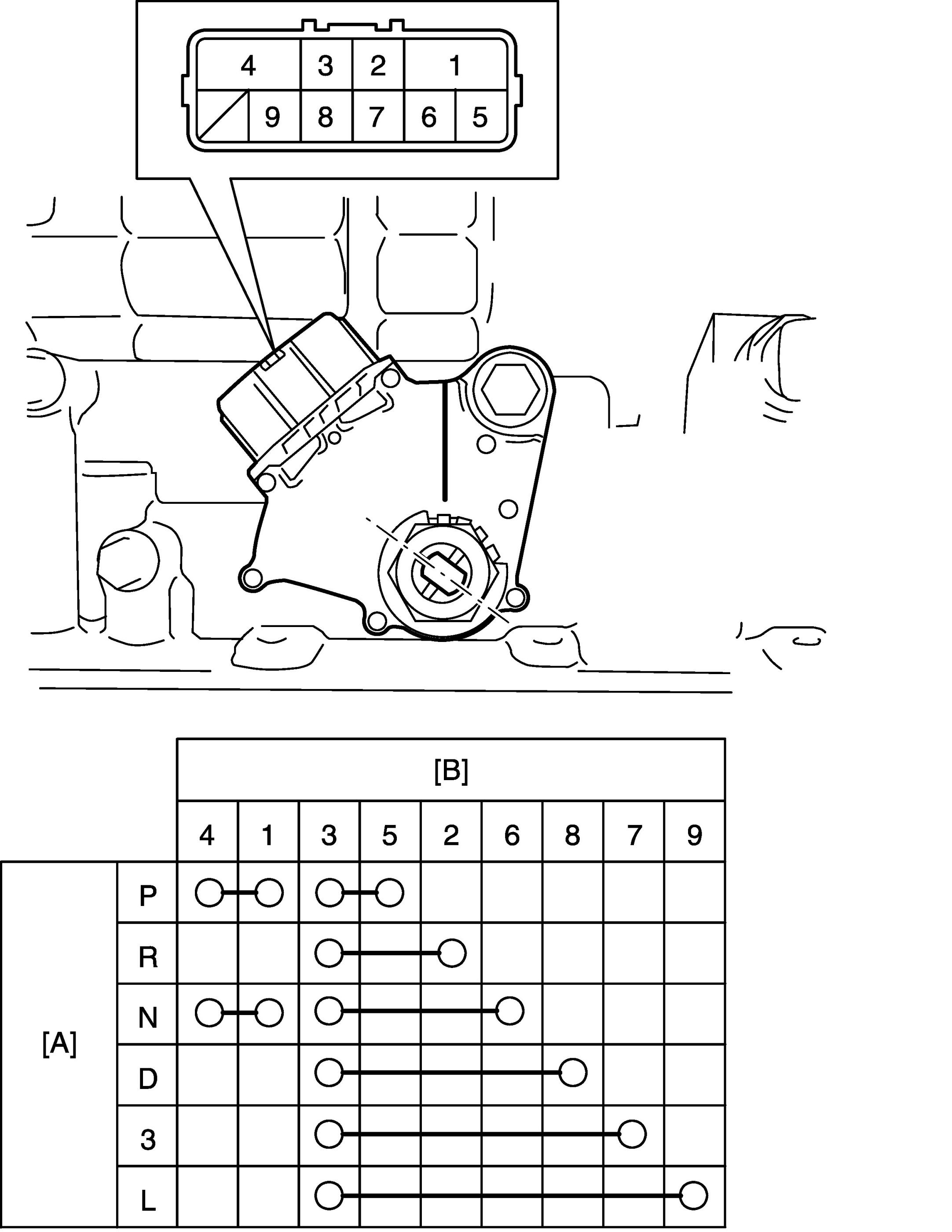 3. Check that engine starts in "N" and "P" ranges but it doesn't start in "D", "3", "L" or "R" range. Also, check that back-up lamp lights in "R" range.
