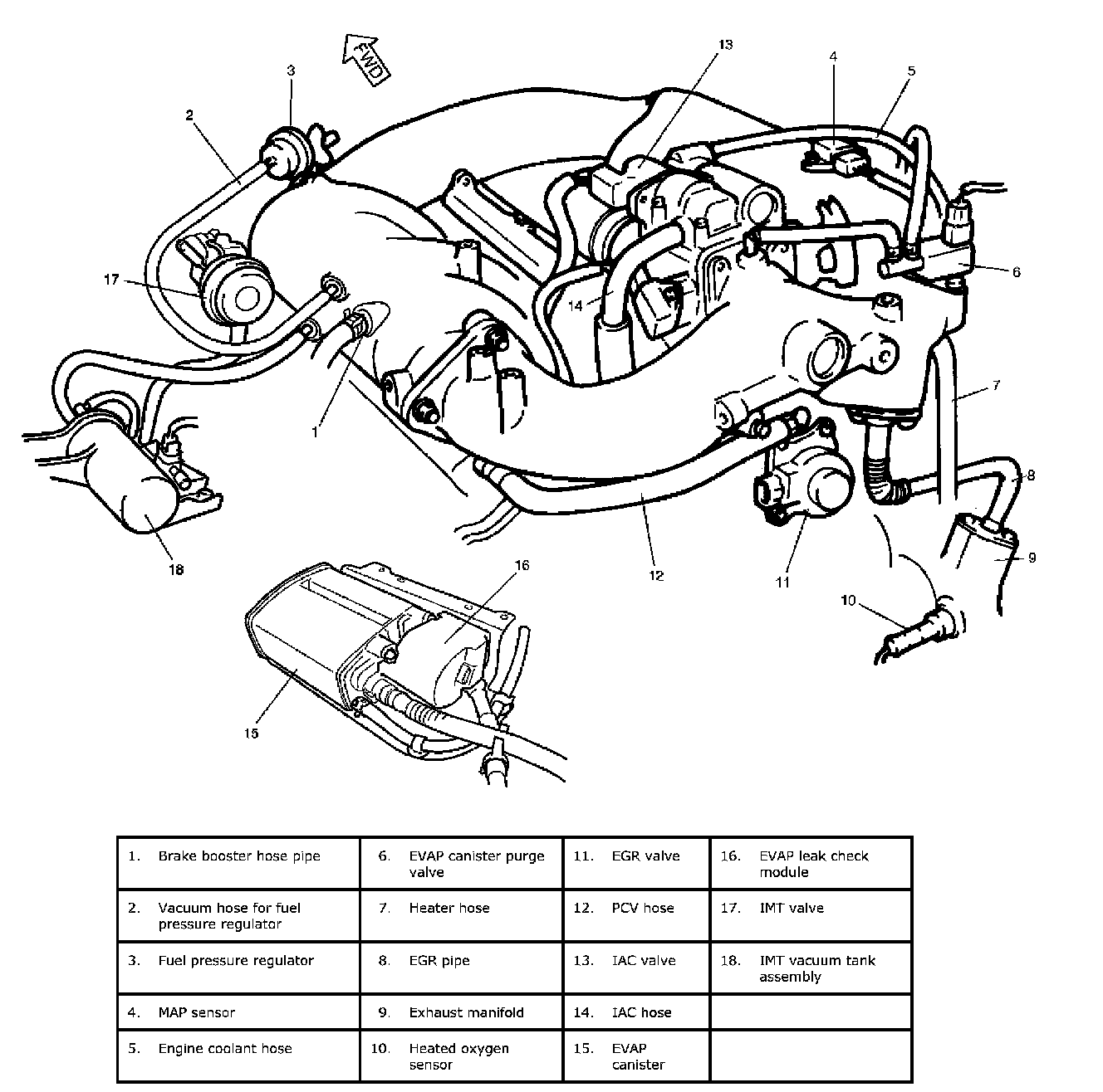 Emission control system includes EGR, EVAP and PCV systems.
