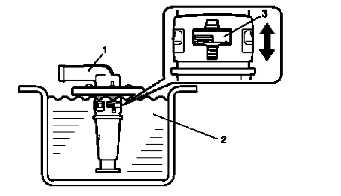 2. Put refuel vapor control valve (1) in kerosene (2), and then check if float (3) moves smoothly to contact valve seat. If found malfunctioning, replace.