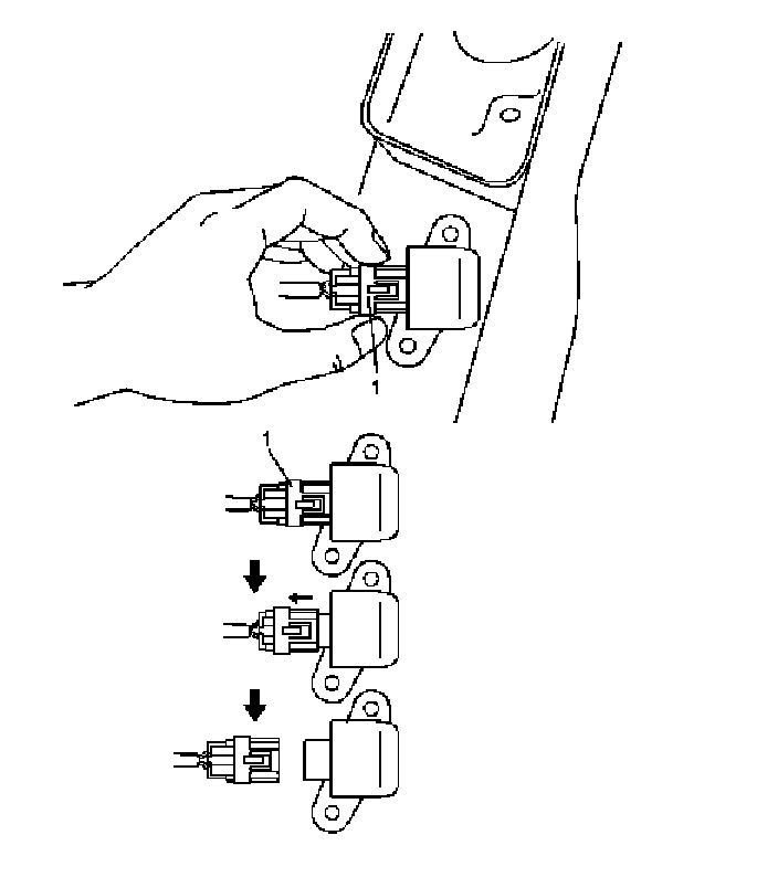 5. Disconnect forward sensor connector sliding connector outer (1) as shown.