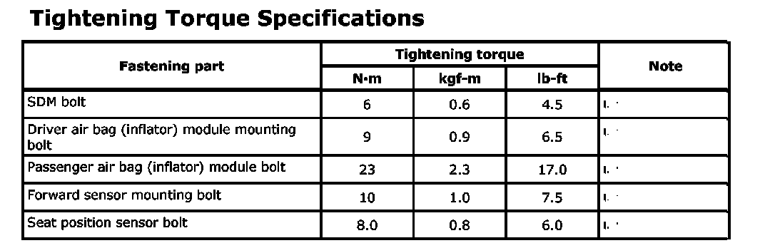 Tightening Torque Specifications