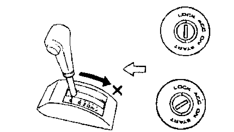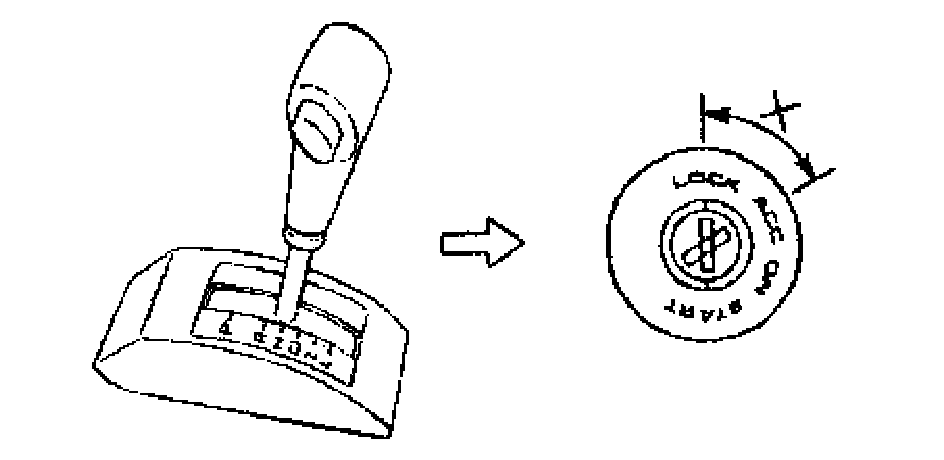 3. With select lever shifted to any position other than P range, check that ignition key cannot be turned "LOCK" position and it cannot be removed from ignition switch unless it is at "LOCK" position.