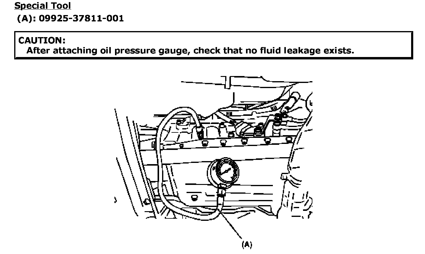 CAUTION: After attaching oil pressure gauge, check that no fluid leakage exists.