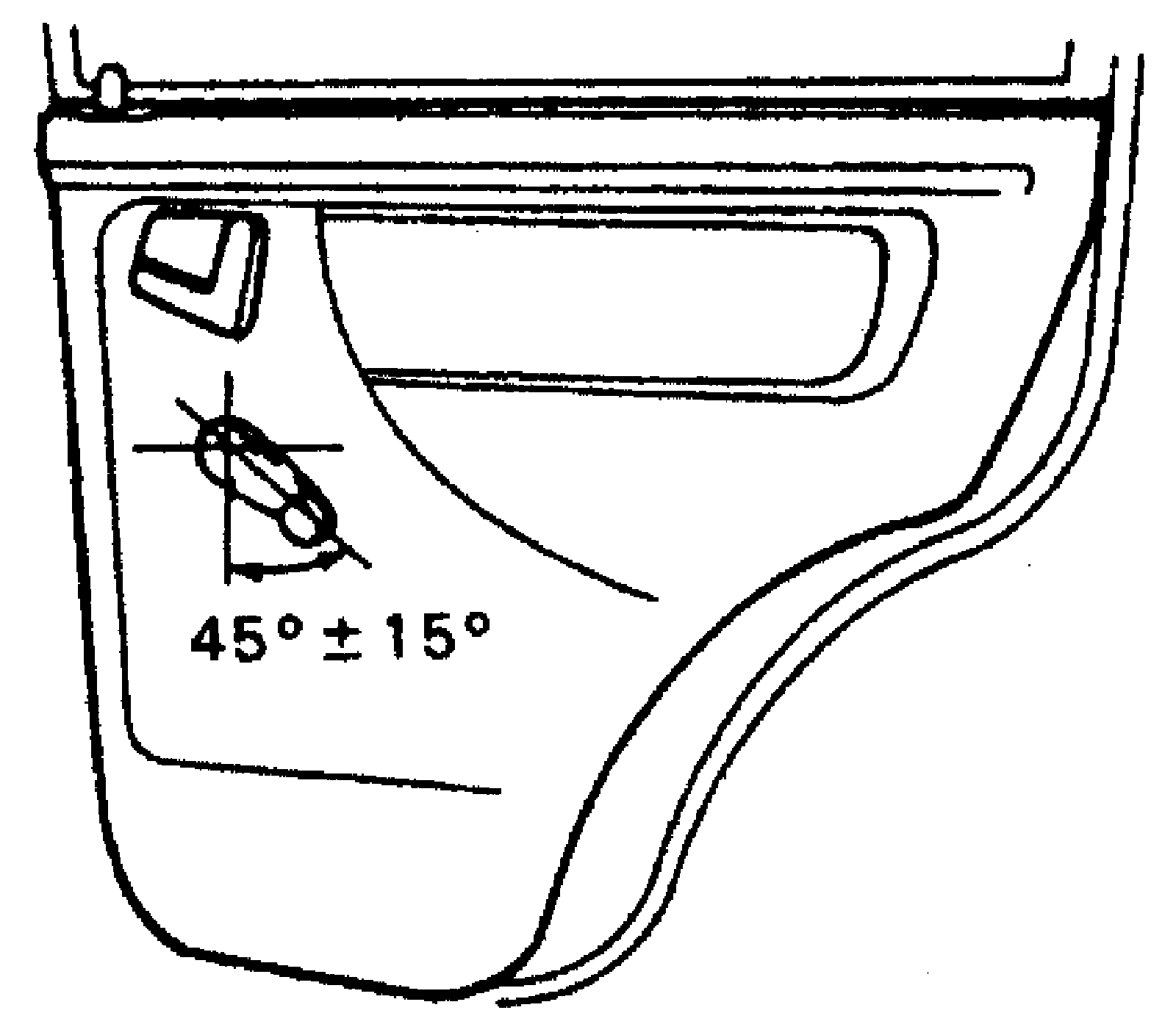 - Install door window regulator handle (if equipped) so that it has an angle as shown when glass is fully closed.