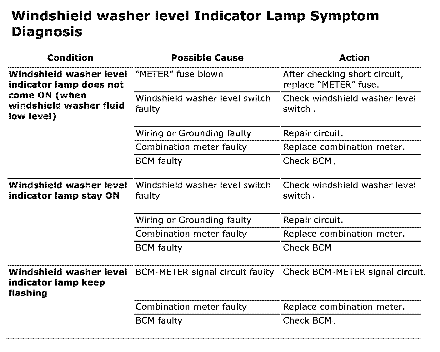 Windshield Washer Level Indicator Lamp Symptom Diagnosis:
