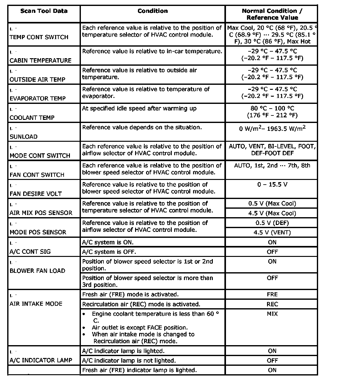 As the data values given below are standard values estimated on the basis of values obtained from the normally operating vehicles by using a scan tool, use them as reference values. Even when the vehicles are in good condition, there may be cases where the checked values do not fall within each specifies data range. Therefore, judgement as abnormal should not be made by checking with these data alone.