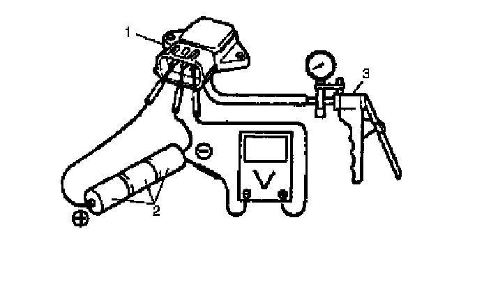 2. Arrange 3 new 1.5 V batteries (2) in series and connect its positive terminal to "Vin" terminal of MAP sensor (1) and negative terminal to Ground terminal. Then check voltage between "Vout" and "Ground".