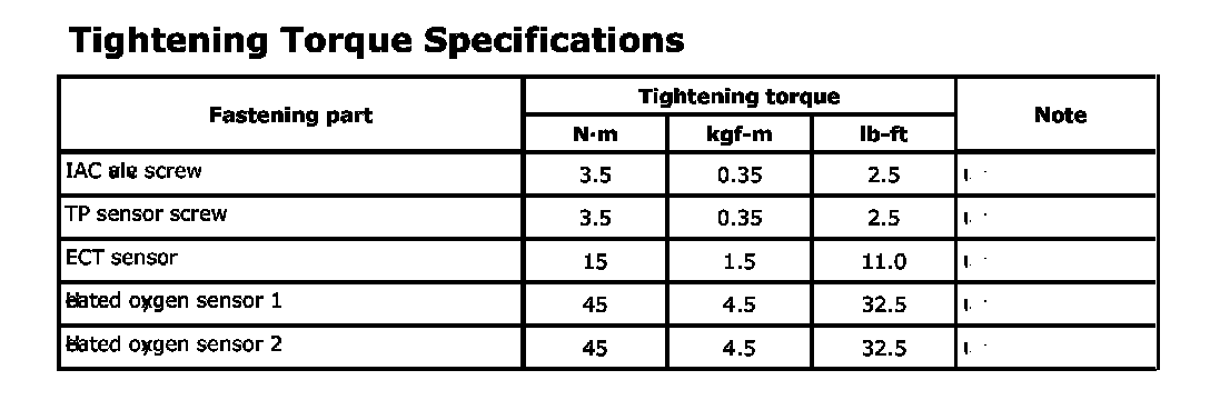 Tightening Torque Specifications