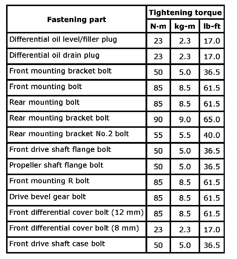 Reference: For the tightening torque of fastener not specified, refer to Fastener Information.