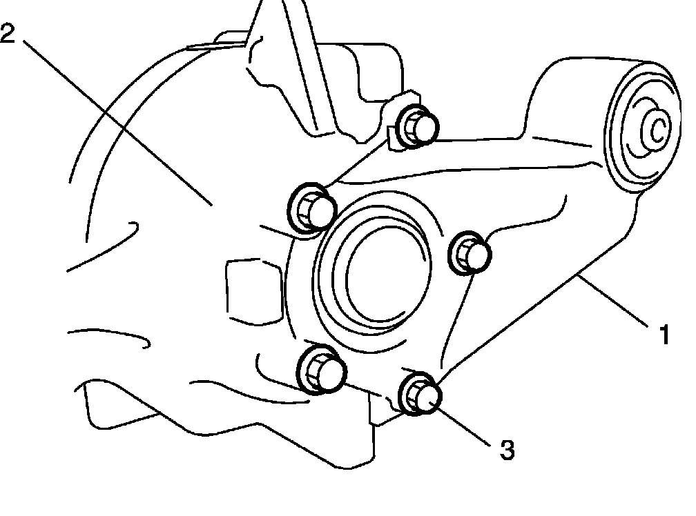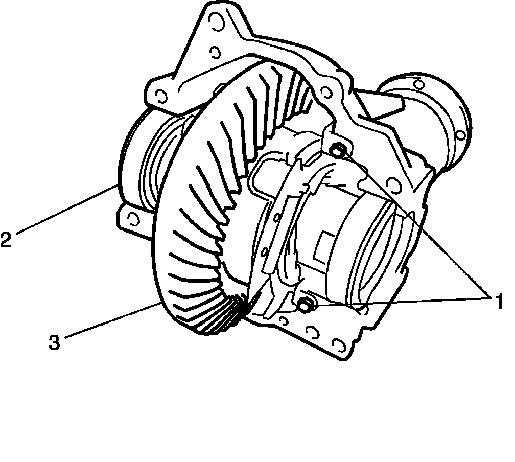 3. Remove front mounting bracket R (1) from differential housing (2) by removing bolts (3).