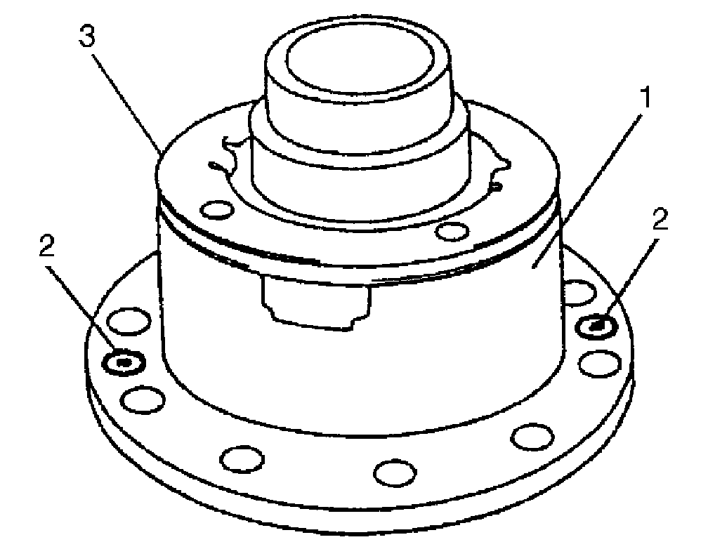 6. Take off differential side bearing outer races (2) and bevel gear with differential case (3).