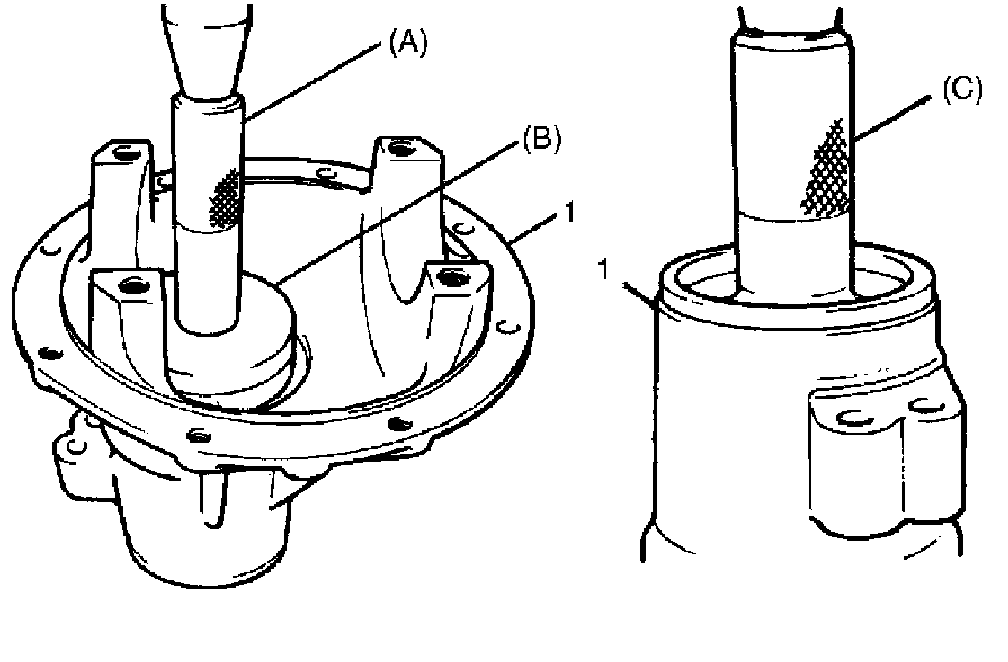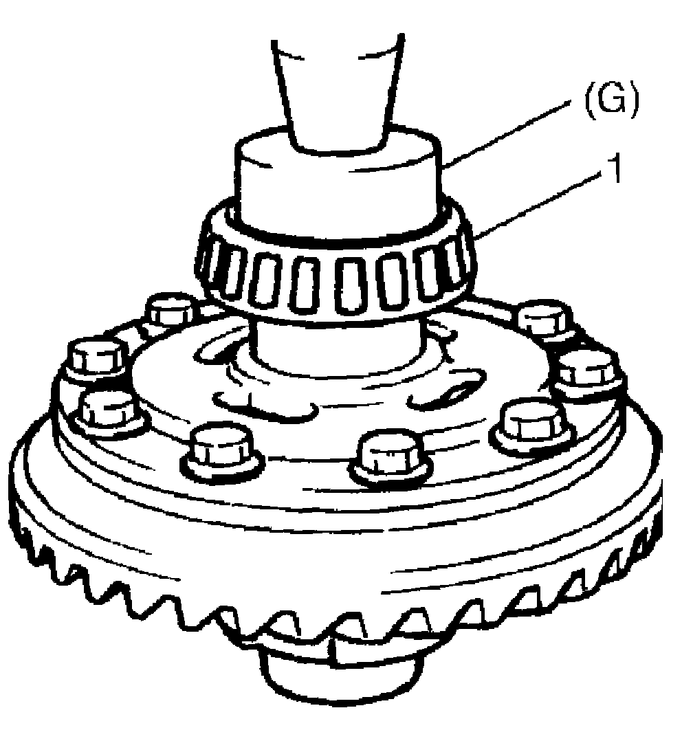 4. Press-fit differential side bearing (1) with special tool and hydraulic press.