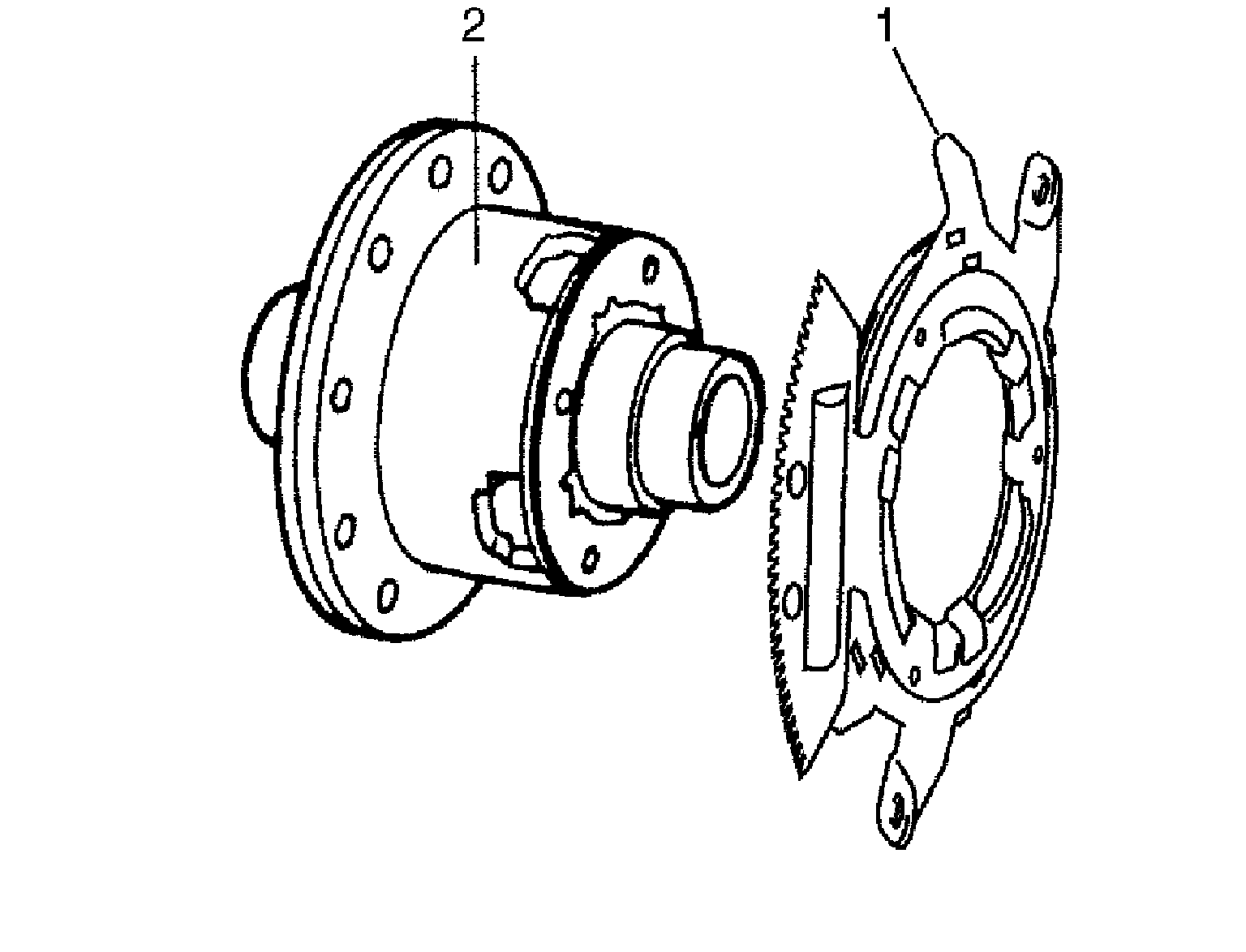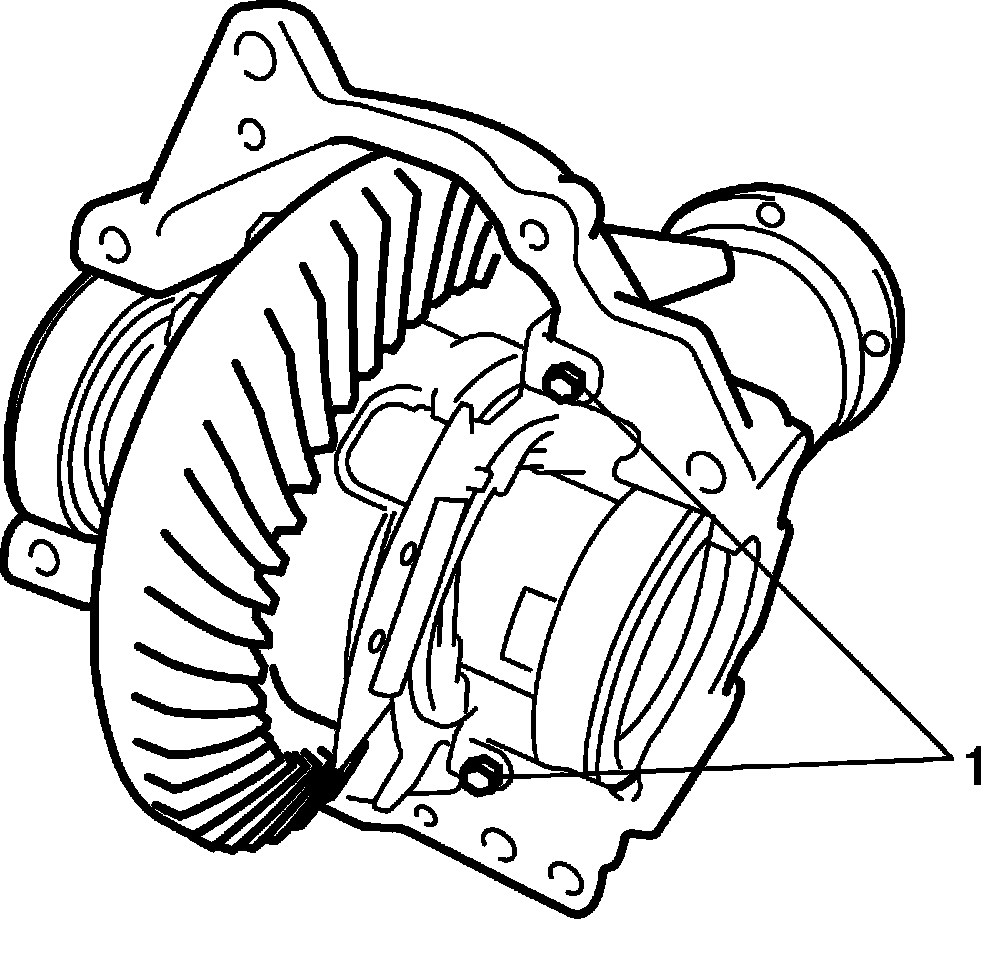 d. Remove cover bolts (1, 2) and differential carrier cover.
