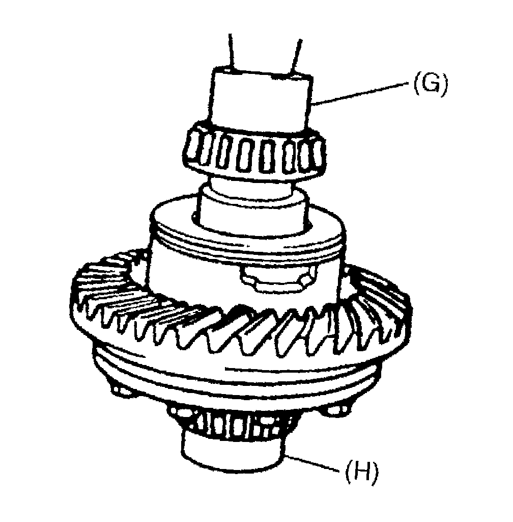 NOTE: Be sure to use bearing holder (special tool (H)) for the purpose of protecting lower bearing.