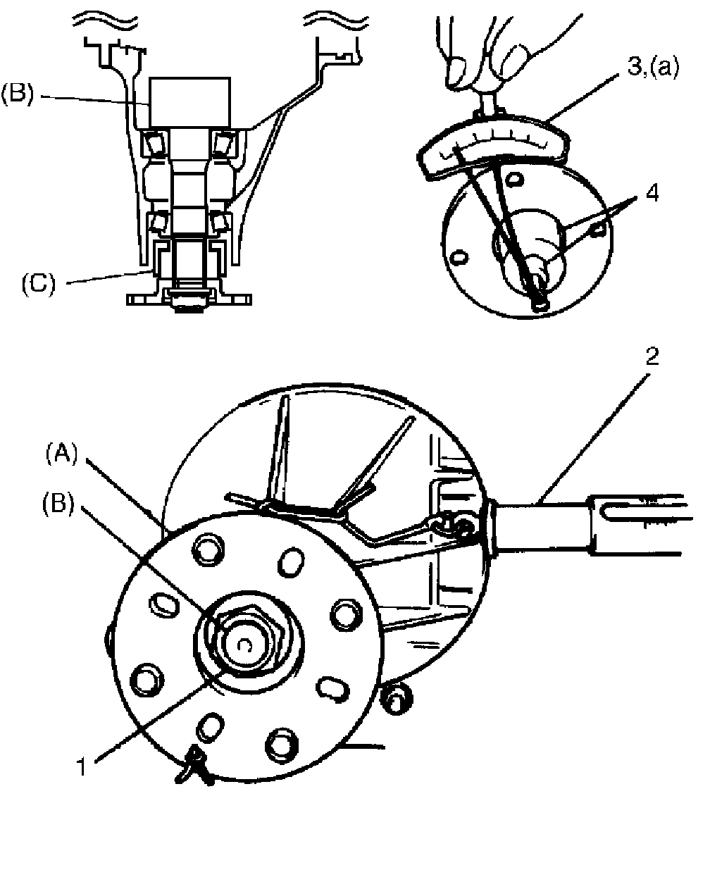 ^ Before taking measurement with spring balance (2) or torque wrench (3), check for rotation by hand and apply small amount of oil to bearings.