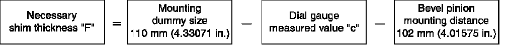 4. Obtain shim thickness by using measured value by dial gauge (which represents "c" in figure) in the following equation.