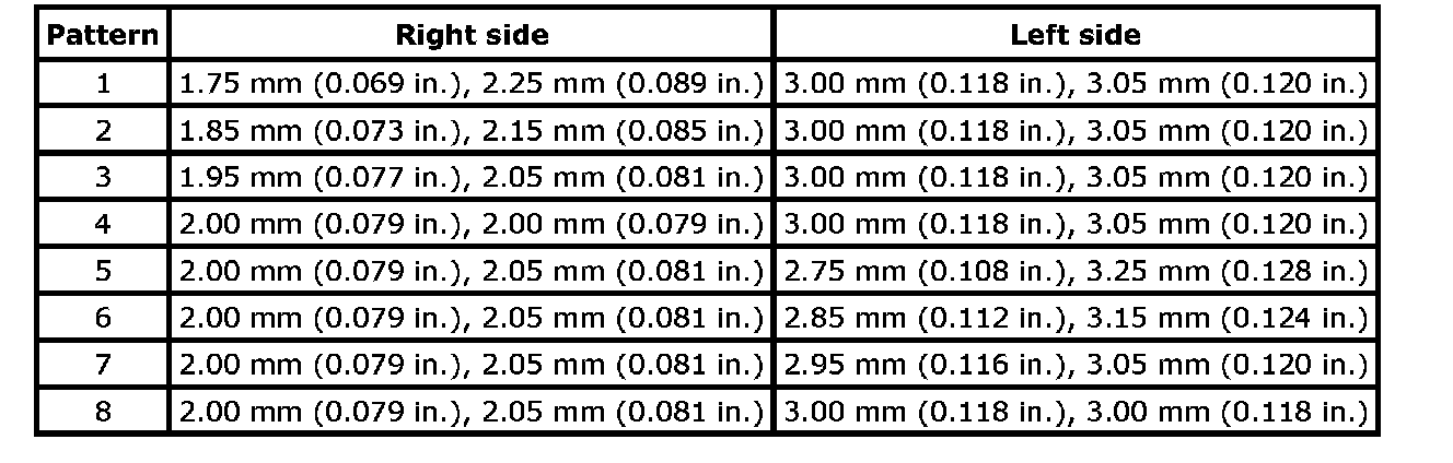 NOTE: Two 2.0 mm (0.079 inch) shims for the left side and two 3.0 mm (0.118 inch) shims for the right side are installed as standard. Therefore, choose shims which are close to the ones mentioned above. For example, if "a" - "b" is 10.05 mm (0.396 inch), combination pattern is as follows.