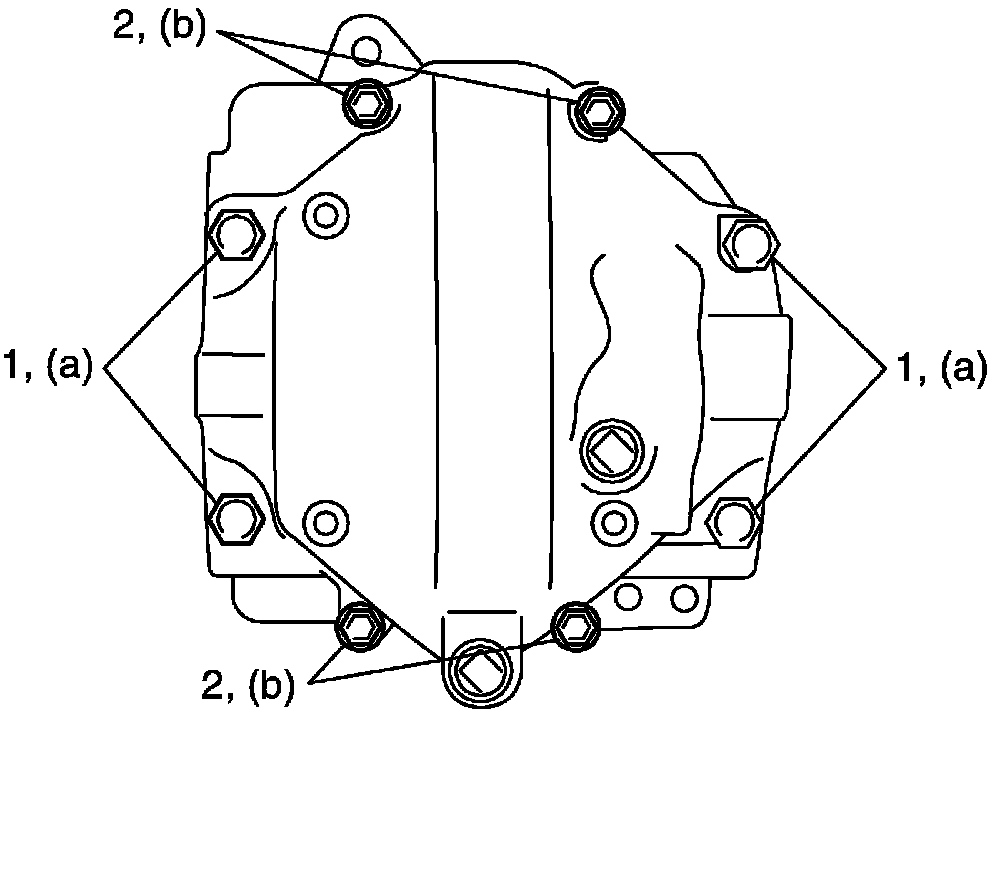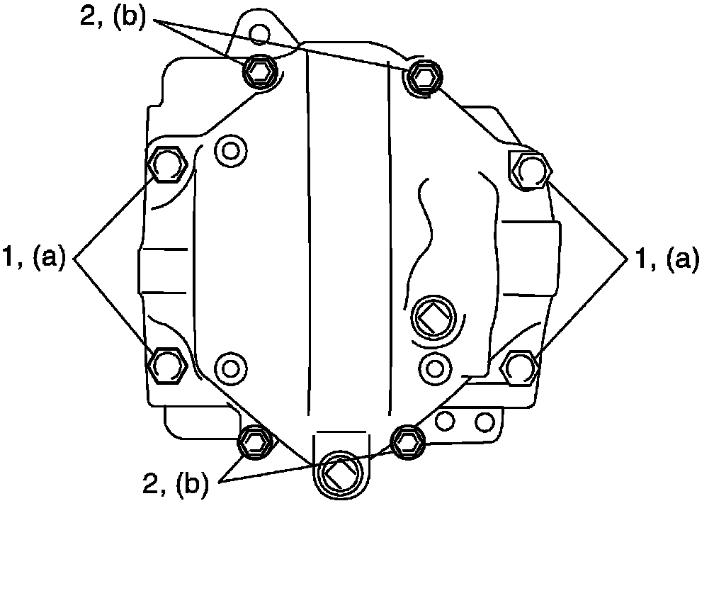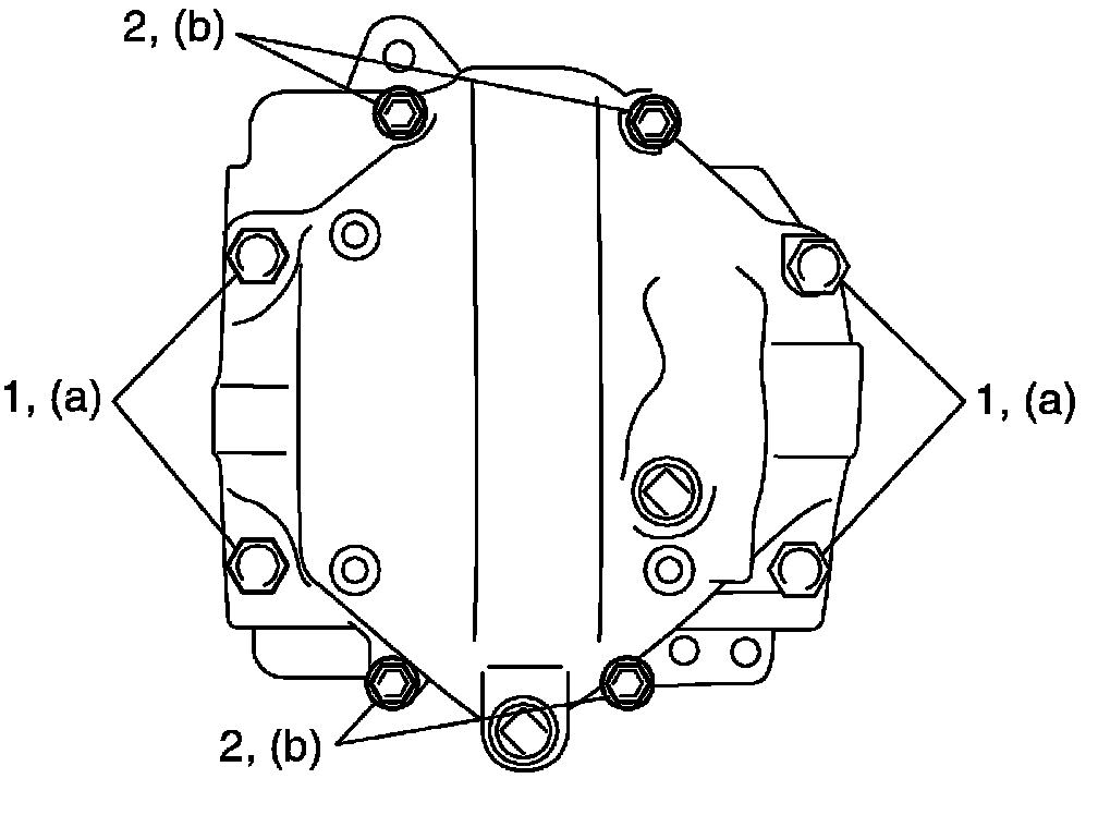 NOTE: Tighten 12 mm thread diameter bolts (1) first, then loosen 8 mm thread diameter bolts (2).