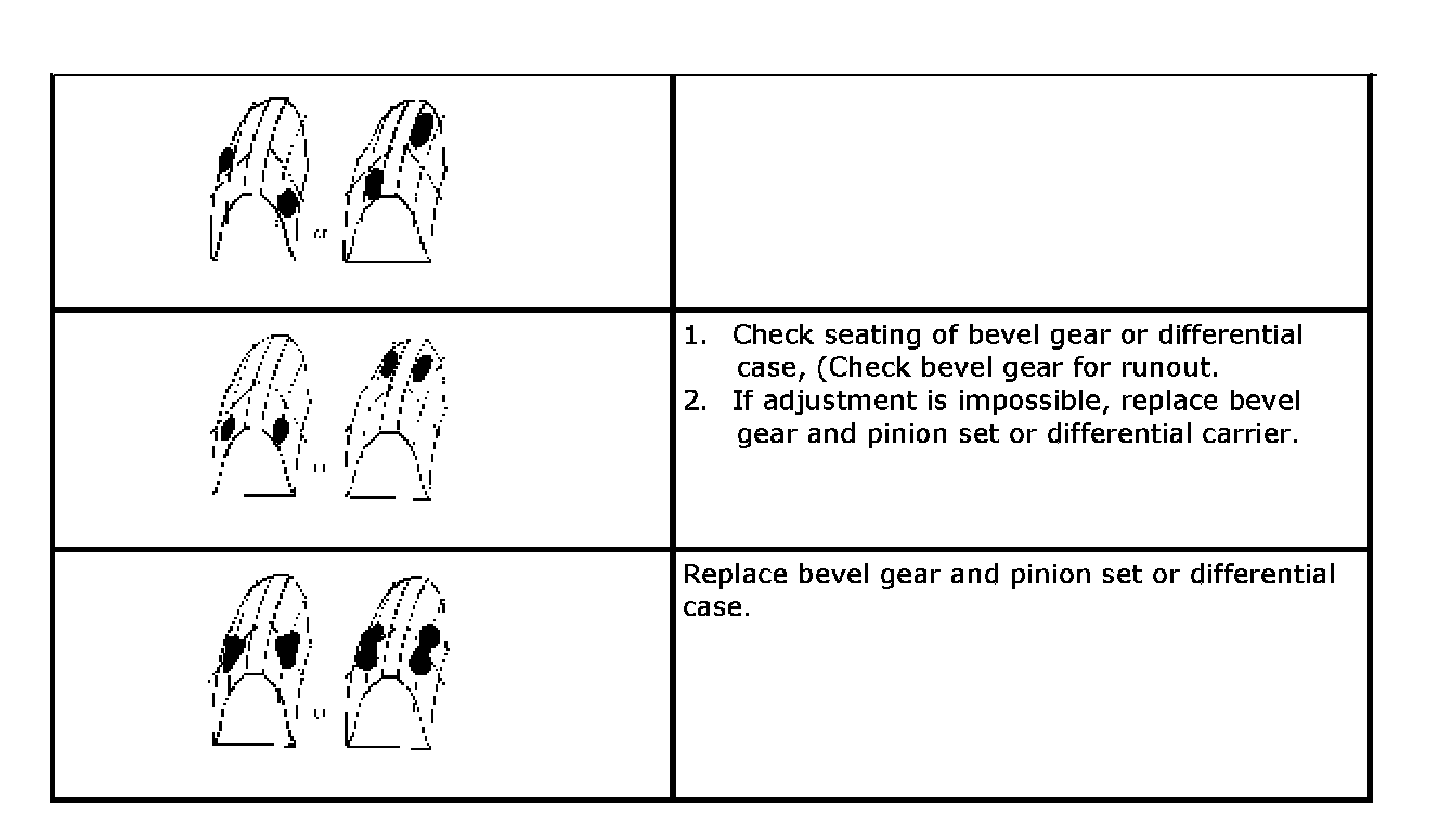e. Bring painted part up and check contact pattern, referring to the following chart. If contact pattern is not normal, readjust or replace as necessary according to instruction in chart.