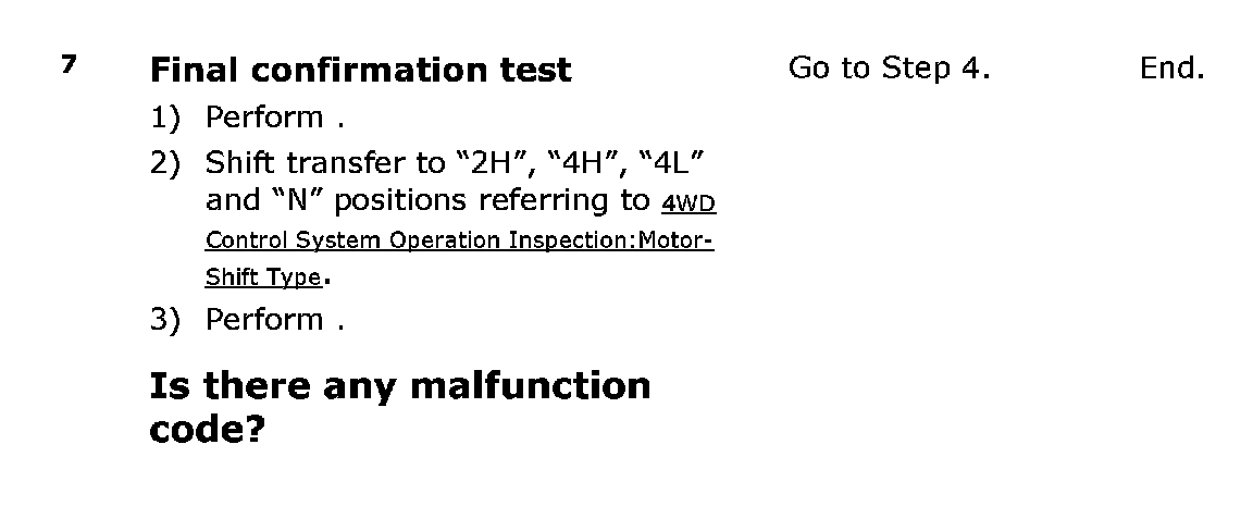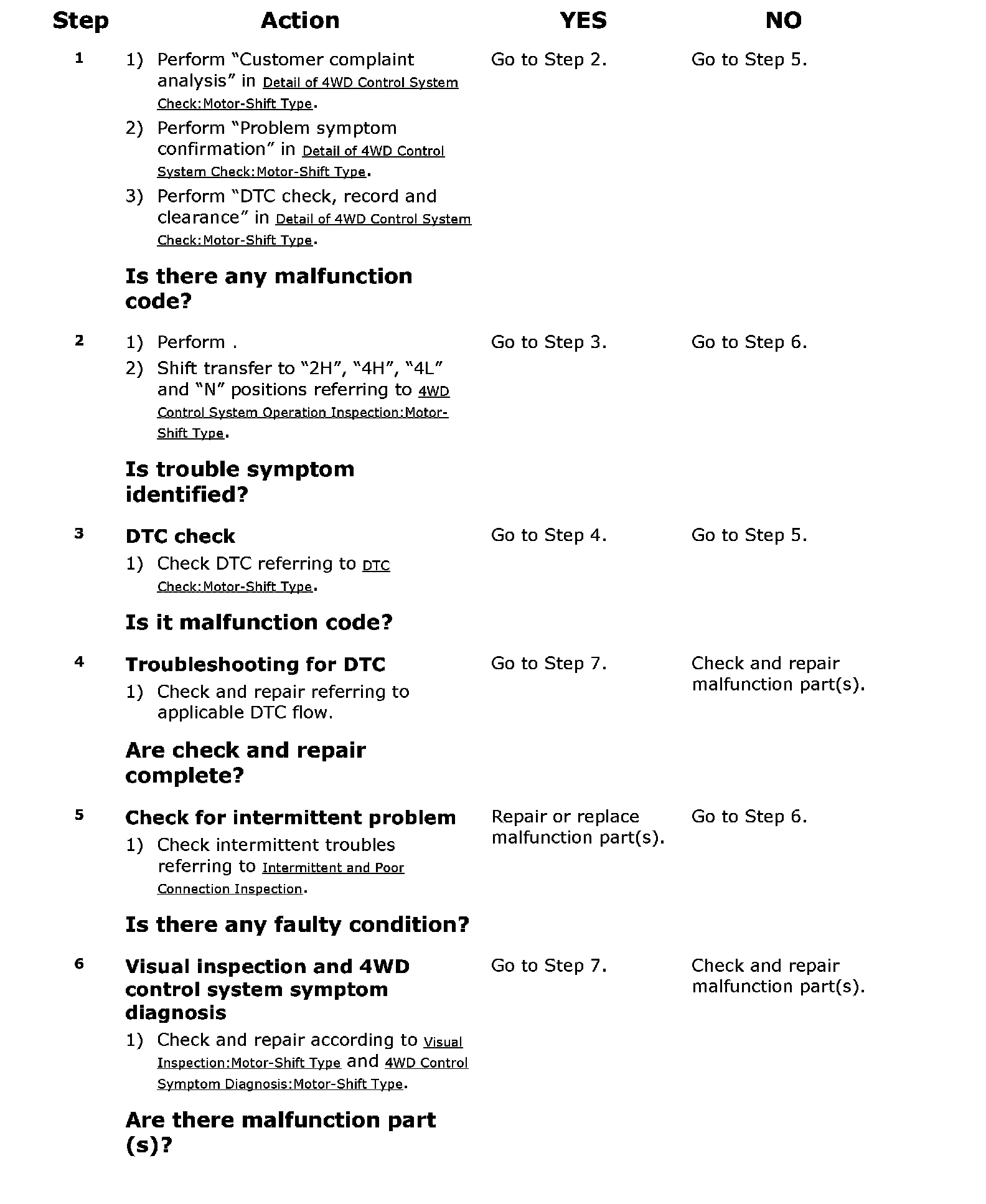 For the details of each step, refer to Detail of 4WD Control System Check: Motor-Shift Type.