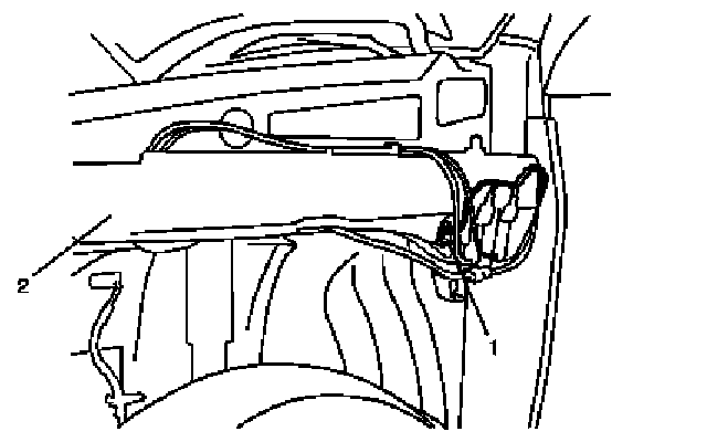 2. Remove windshield washer level switch (1) from windshield washer tank (2).