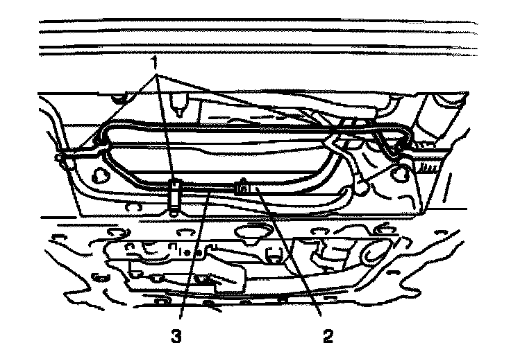 7. Detach low pressure return hose (2) from low pressure return pipe (3) and then disconnect pipe bracket (1).