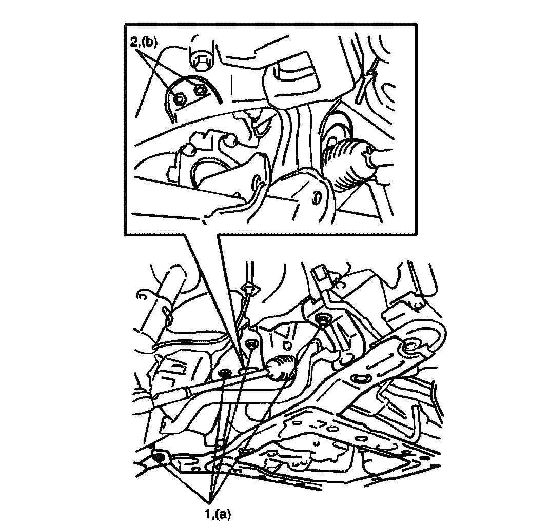 Engine front body side mounting nut b: 55 Nm (5.5 kg-m, 40.0 ft. lbs.)