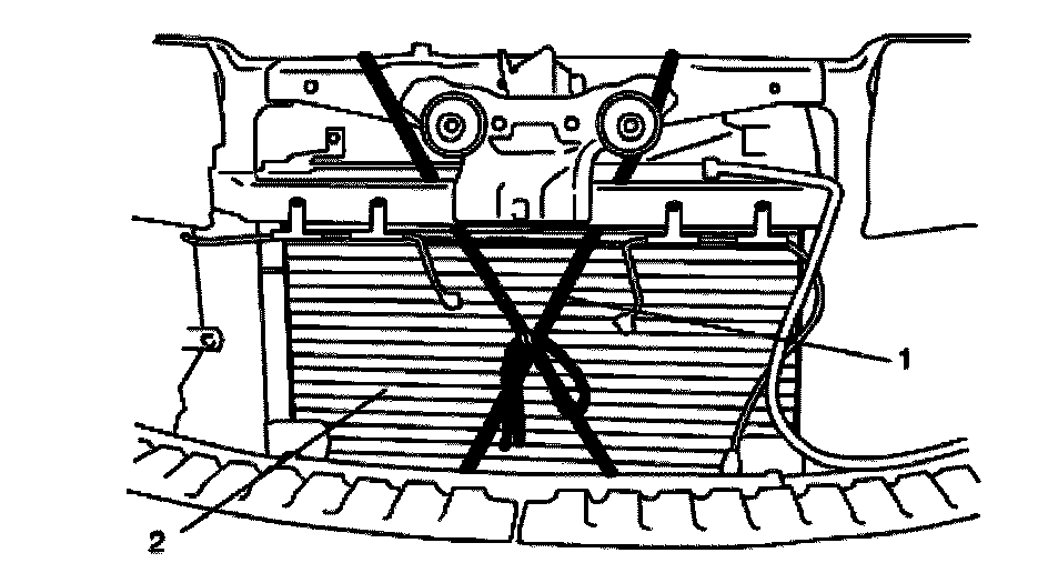 10. Fix radiator (2) to body with rope (1) to avoid the radiator (2) fall off when front suspension frame lowered.