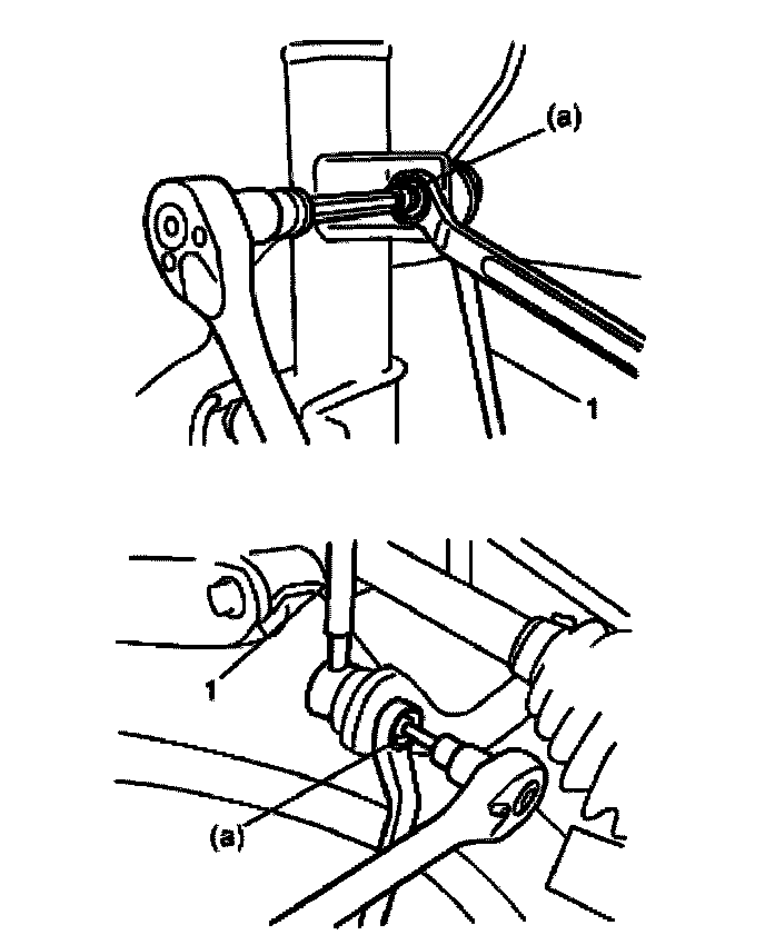 5. Remove stabilizer joints (1). When loosening joint nut, hold stud with hexagon wrench.