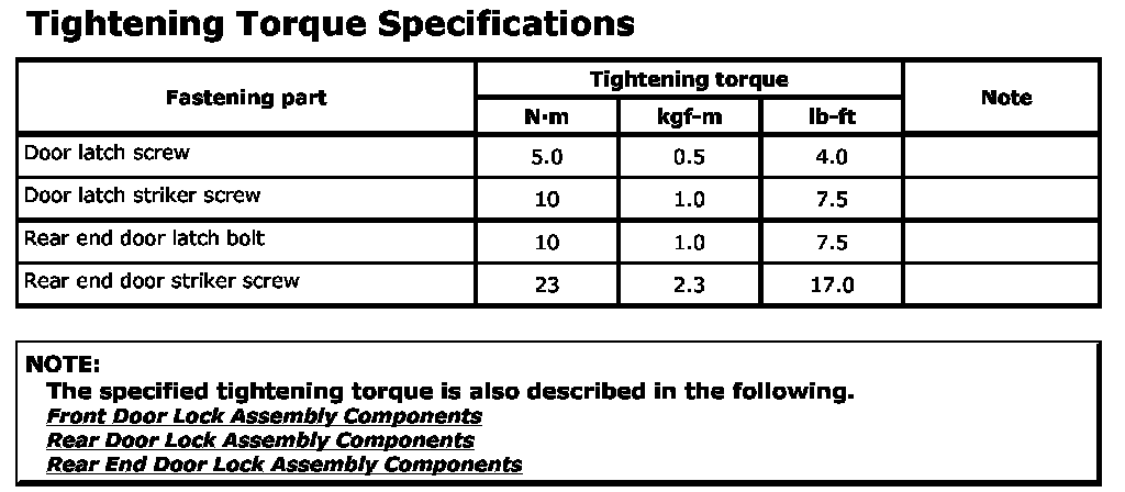 Tightening Torque Specifications