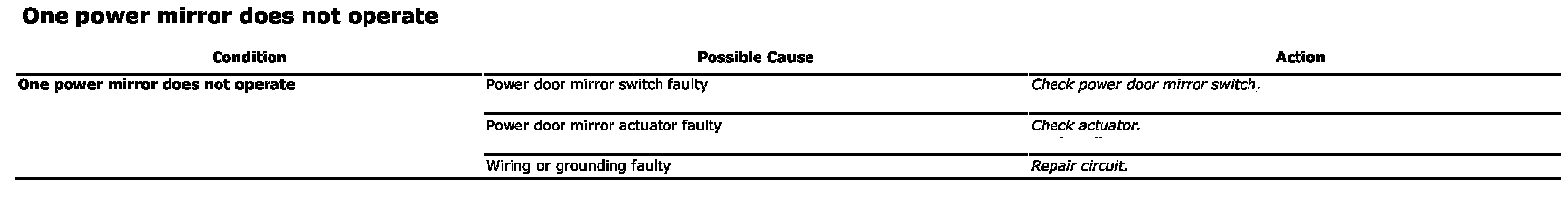 One Power Mirror Does Not Operate: