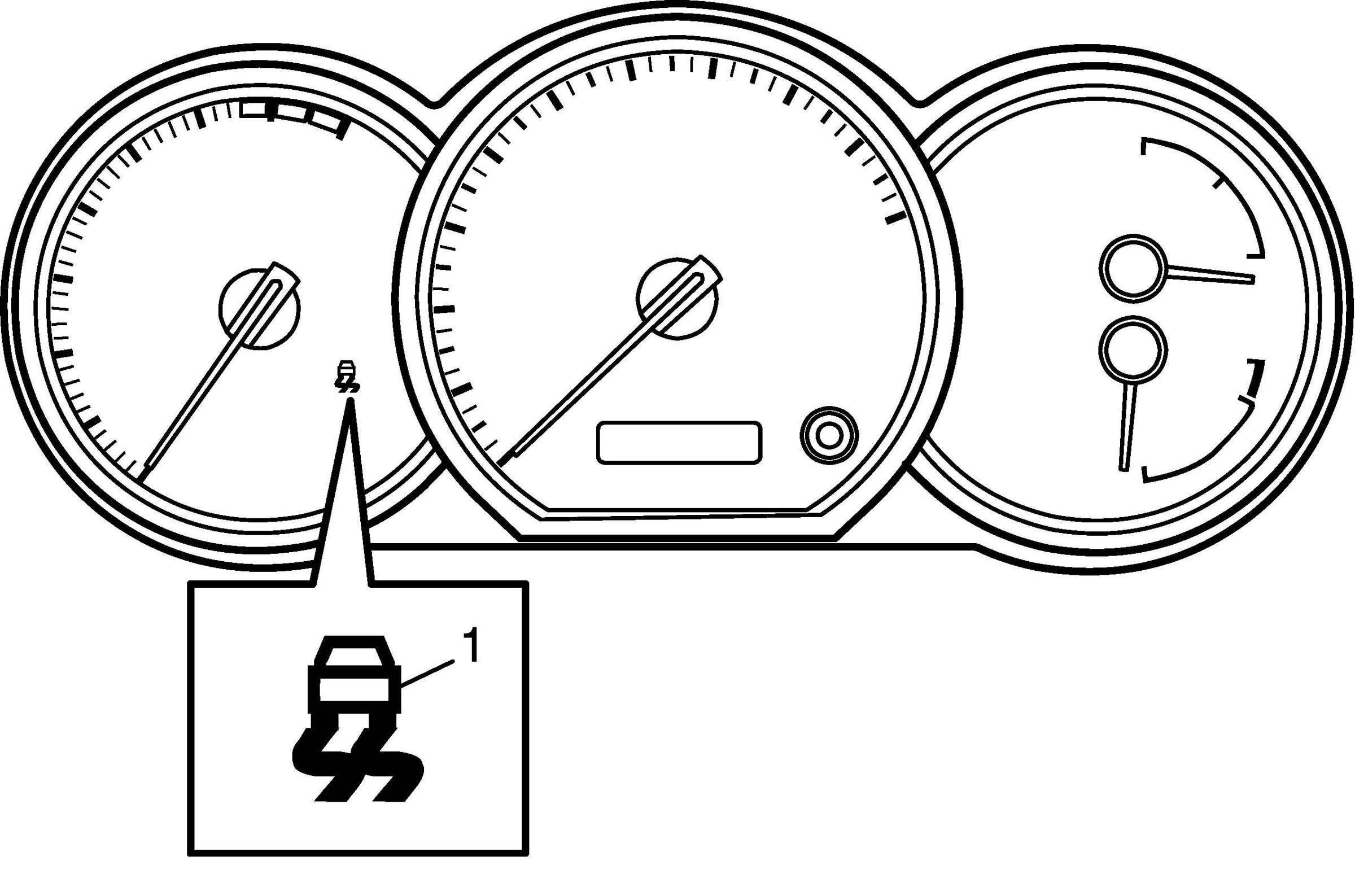 CAUTION: When power is not supplied to the steering angle sensor by removing battery or fuse, DTC C1075 is detected and SLIP indicator light (1) flashes. If DTC other than C1075 is detected, SLIP indicator light flushes and other indicator illuminate. In that case, repair the detected DTC first.
