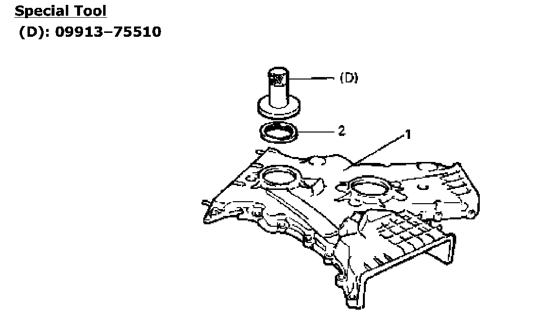 New oil seal (2) with its surface is flash with edge of timing chain cover (1).