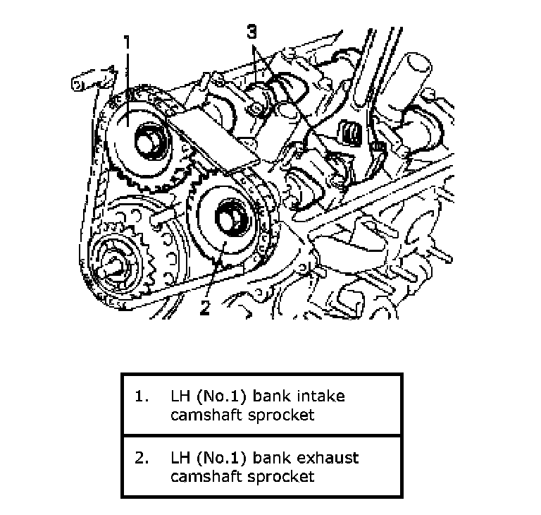 6) Remove LH (No.1) bank exhaust camshaft sprocket (1).