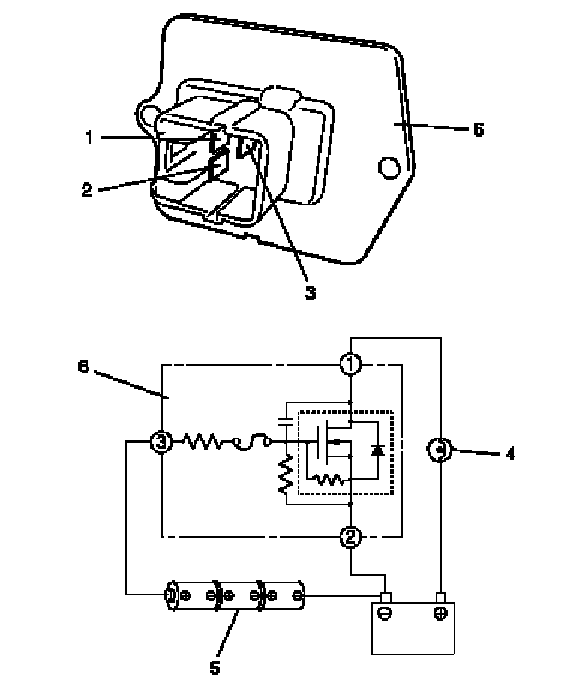 - Using service wire, connect battery positive terminal to "1" terminal (1) of blower motor controller (6) and battery negative terminal to "2" terminal (2) of blower motor controller.