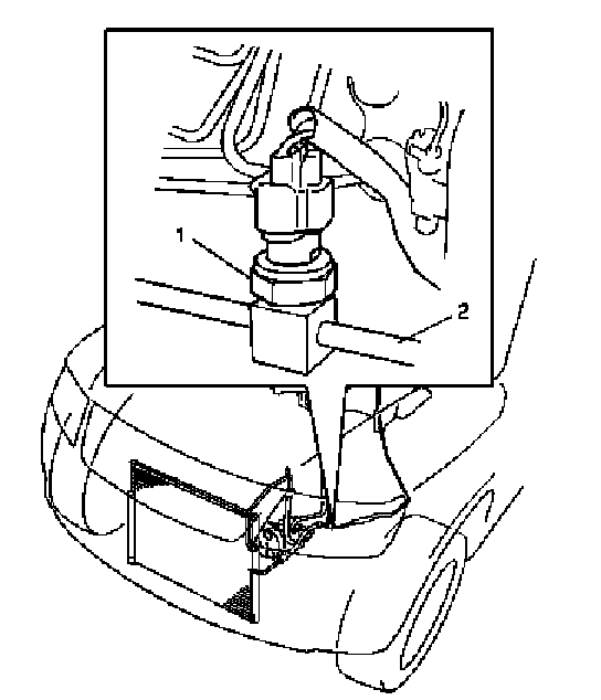 4. Remove A/C refrigerant pressure sensor (1) from liquid pipe (2).