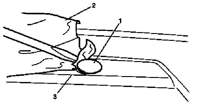Auto-On Headlight Sensor Inspection (If Equipped)1. Remove auto-on headlight sensor (1) located on the passenger side of the dashboard (2). Be careful not to damage the sensor (1) and dashboard by using rag (3).