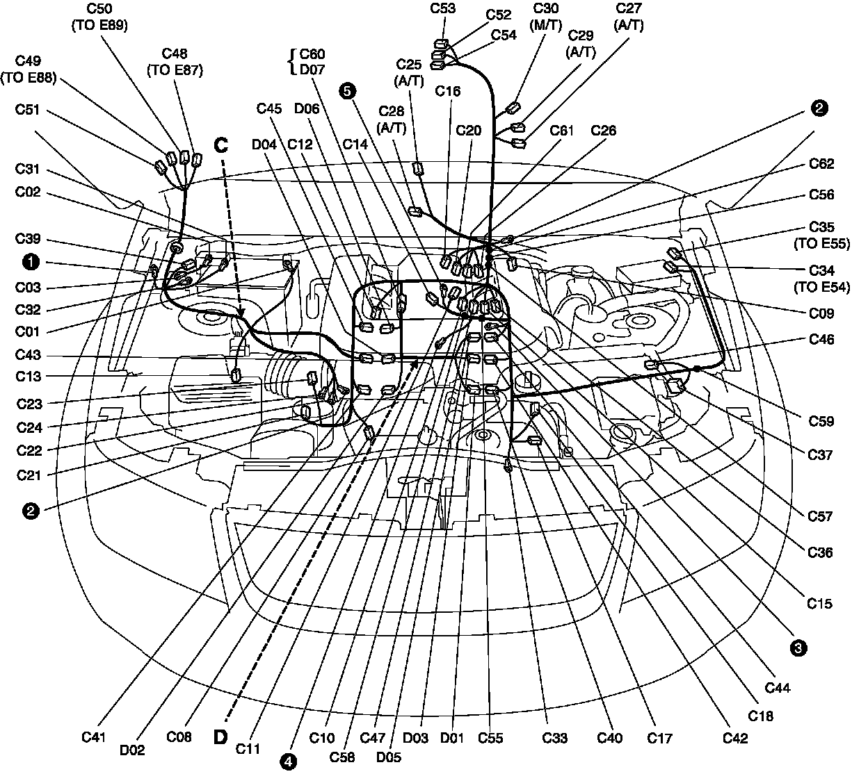 C: Engine Harness / D: Injector Harness View: