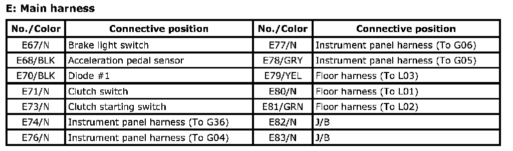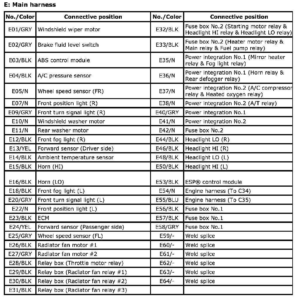 E: Main Harness Index: