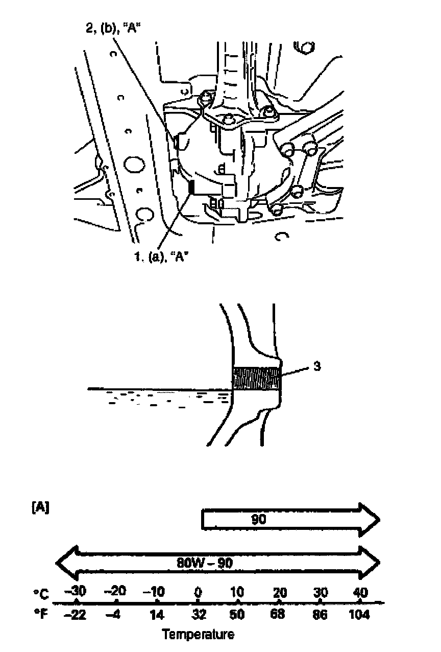 Differential oil specification: API GL-5 (For SAE classification, refer to viscosity chart [A] in figure.)