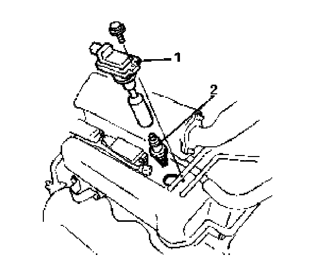 4) Remove all ignition coils (1) and spark plugs (2).