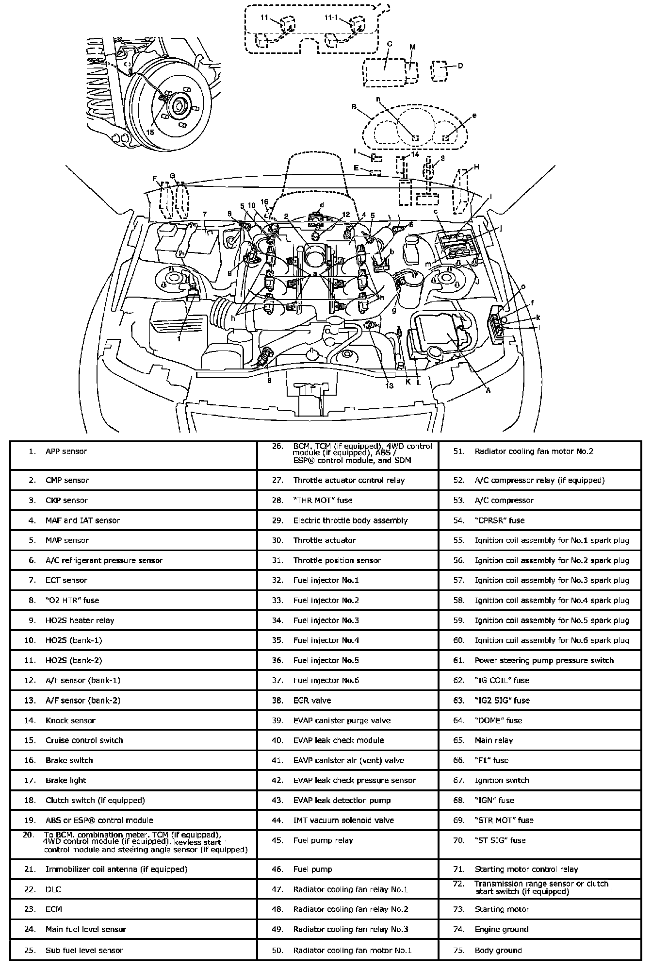 Especially, ECM (Engine Control Module), BCM (Body electrical Control Module), combination meter, TCM (Transmission Control Module (For A/T model)), ABS / ESP(R) control module (if equipped), steering angle sensor (if equipped), 4WD control module (if equipped) and keyless start control module (if equipped) intercommunicate by means of CAN (Controller Area Network) communication.