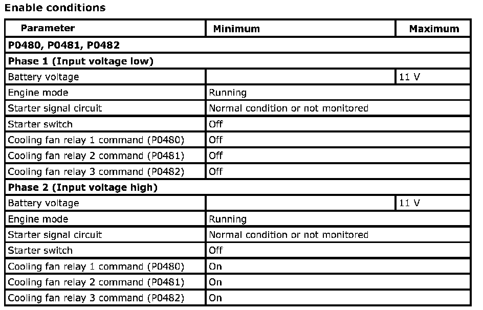 P0480, P0481, P0482