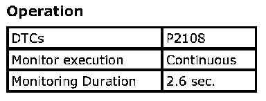 Refer to DTC P2108: Throttle Actuator Control Module Performance. P2108