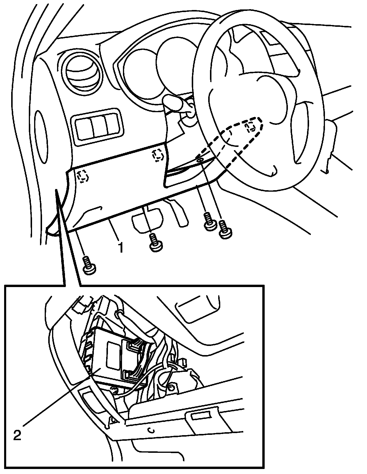 2. Remove steering column hole cover (1).