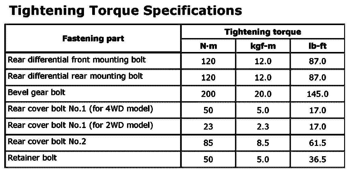 Tightening Torque SpecificationsTightening Torque Specifications: