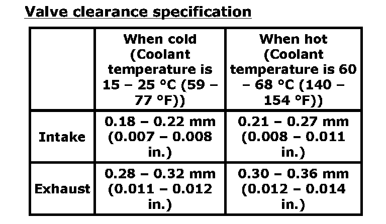 Valve clearance specification: