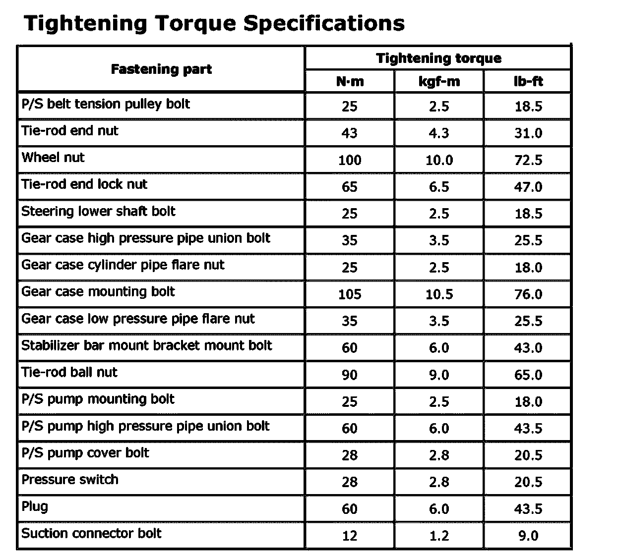 For the tightening torque of fastener not specified in this section, refer to Fastener Information.