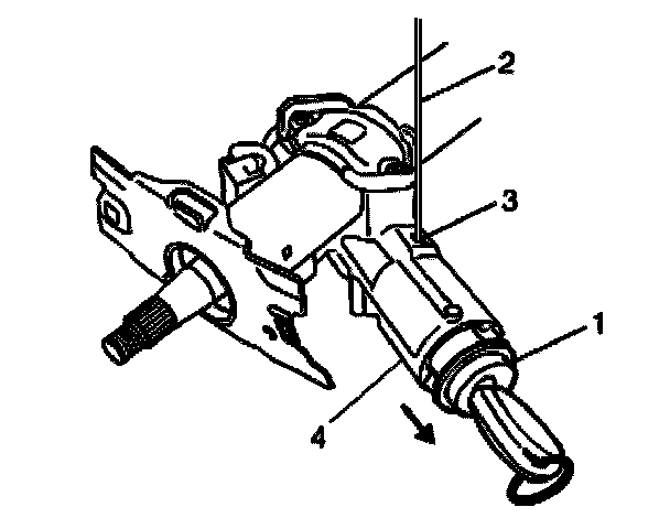 c. Detach ignition switch cylinder assembly (1) from steering lock assembly (4).