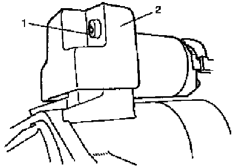 1. Disconnect lead wire (1) from terminal "M" (2).